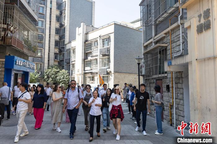 9月6日至10日,中亞五國(guó)青年代表團(tuán)一行20人赴渝參訪。圖為代表團(tuán)參訪重慶兩江新區(qū)邢家橋社區(qū)。 陳建 攝