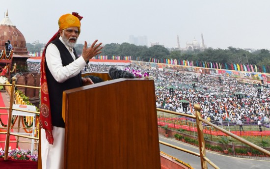 8月15日,印度總理莫迪在德里出席獨立日慶祝活動時發(fā)表講話。新華社發(fā)