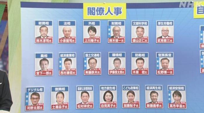 從調(diào)整結(jié)果來看,總共有11人首次進(jìn)入內(nèi)閣,包括總務(wù)大臣鈴木淳司、文部科學(xué)大臣盛山正仁以及防衛(wèi)大臣木原稔等,表面看起來確實(shí)很“新”。