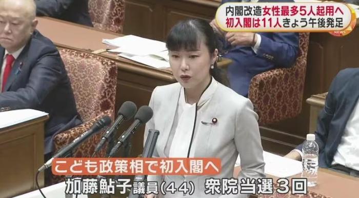 首次入閣的兒童政策擔(dān)當(dāng)大臣加藤鲇子。圖片來源:日本富士電視臺視頻截圖