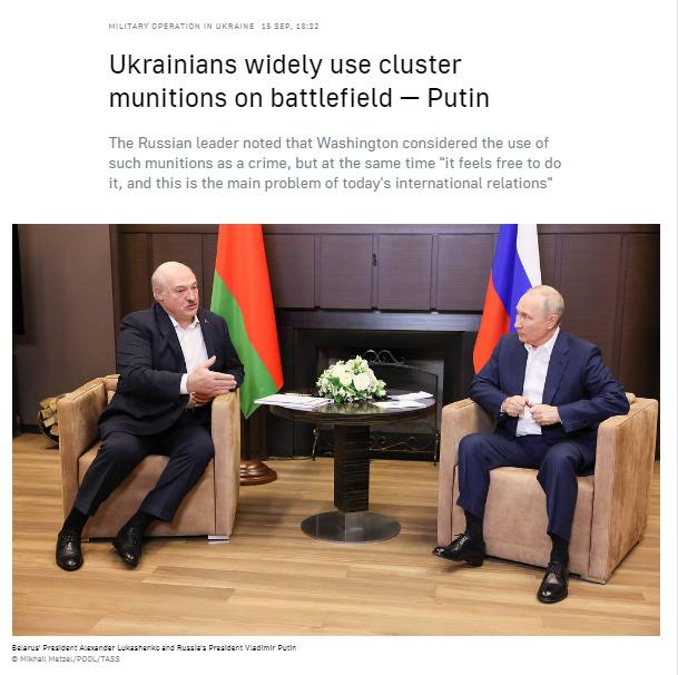 中新網(wǎng)9月15日電 據(jù)塔斯社報道,當(dāng)?shù)貢r間15日,俄羅斯總統(tǒng)普京在索契會見白俄羅斯總統(tǒng)盧卡申科時向記者表示,烏克蘭正在廣泛地使用集束彈藥。他還對為烏克蘭提供集束彈藥的美國做出評論。