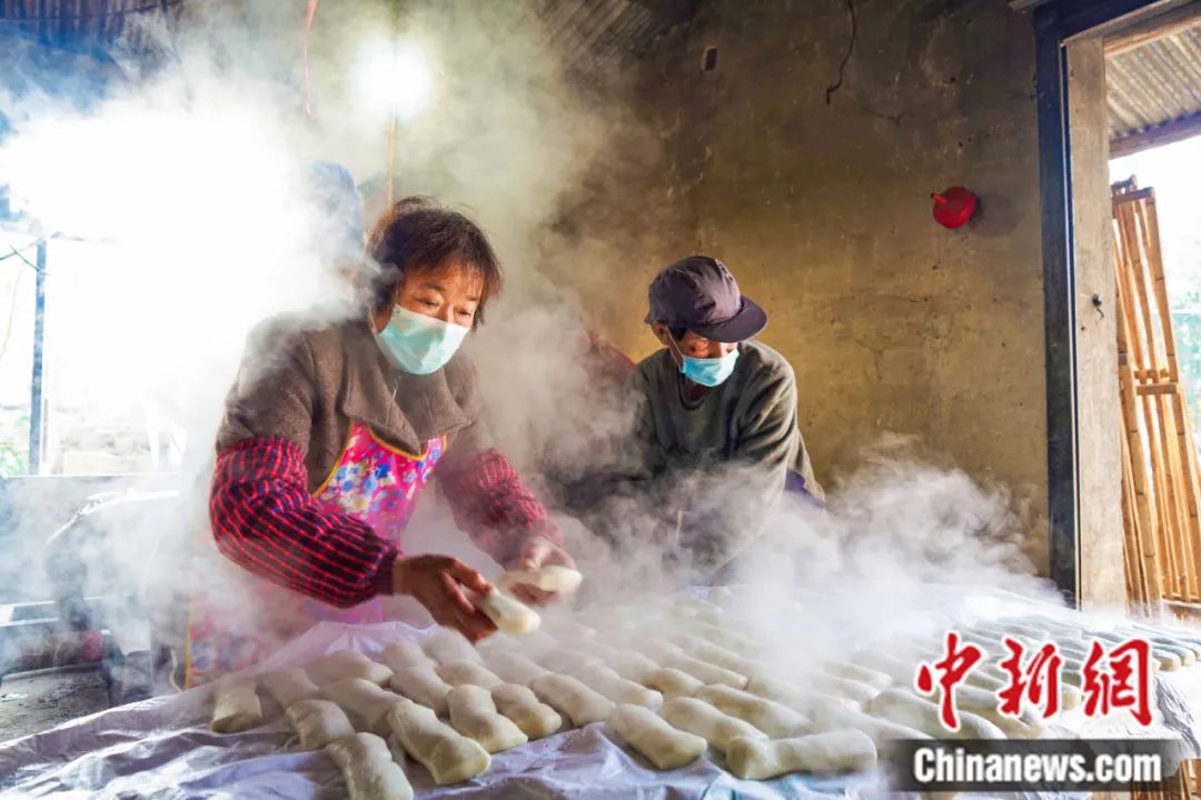 浙江省湖州市南潯區(qū)千金鎮(zhèn)朝陽(yáng)村,村民們加工年糕。陸志鵬 攝