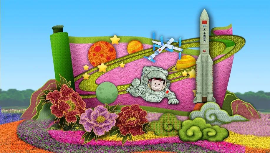 10. 復興門東北角的“筑夢未來”花壇頂高8.5米,以中國航天員、空間站為主景,寓意航天強國建設蓬勃發(fā)展,助力中國夢早日實現(xiàn),全面推進中華民族偉大復興,譜寫新時代中國特色社會主義更加絢麗的華章。