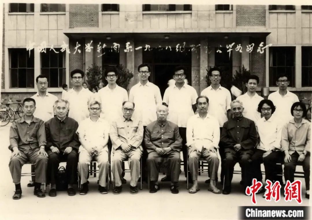 1981年,中國人民大學新聞系1978級研究生畢業(yè)留念。前排左三為方漢奇。中國人民大學新聞學院供圖