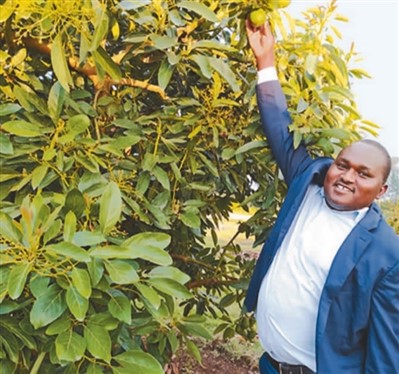 圖為烏干達(dá)一家果園的負(fù)責(zé)人展示有機(jī)牛油果。
