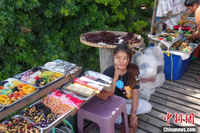 10月1日,緬甸曼德勒,街頭一位商販在售賣翡翠玉石飾品等商品。 中新社記者 劉冉陽 攝