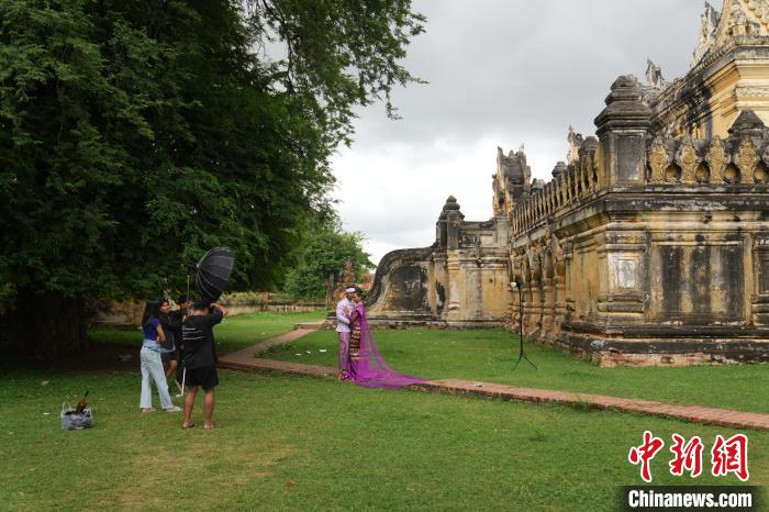 9月30日,緬甸曼德勒,一對新人在因瓦古城遺址拍攝婚紗照。 中新社記者 劉冉陽 攝