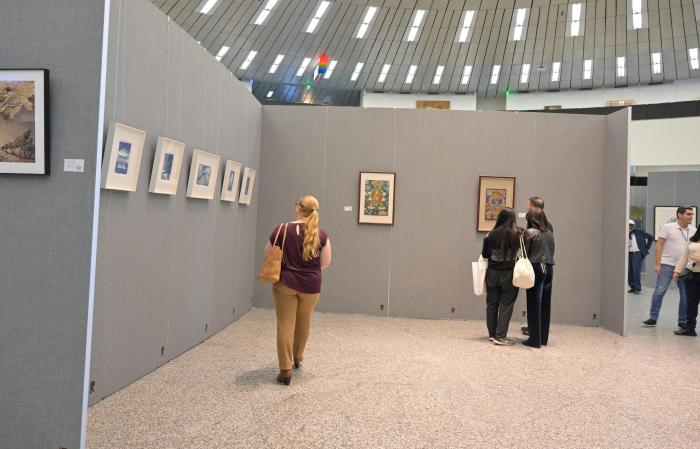 各國(guó)外交官和聯(lián)合國(guó)國(guó)際職員們?cè)谛蕾p中國(guó)藝術(shù)家的作品。歐洲時(shí)報(bào)記者周修怡 攝