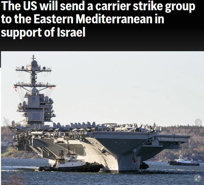 據(jù)美聯(lián)社報道,當(dāng)天,美國國防部長奧斯汀發(fā)表聲明稱,他下令“杰拉爾德·R·福特”號航空母艦戰(zhàn)斗群移至更靠近以色列的東地中海,包括一艘航空母艦、一艘導(dǎo)彈巡洋艦和四艘導(dǎo)彈驅(qū)逐艦,以展示武力,準(zhǔn)備應(yīng)對任何情況,這些情況包括阻止更多武器送達(dá)巴勒斯坦伊斯蘭抵抗運動(哈馬斯)以及進(jìn)行監(jiān)視。
