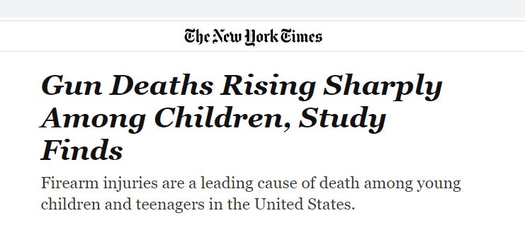 文章援引“槍支暴力檔案”(Gun Violence Archive)的數(shù)據(jù)稱,今年到目前為止,美國已有1300多名兒童和青少年死于槍支,而美國疾病控制與預(yù)防中心(CDC)在4月份發(fā)現(xiàn),在2019年至2021年的短短兩年內(nèi),兒童涉槍死亡人數(shù)上升了50%。