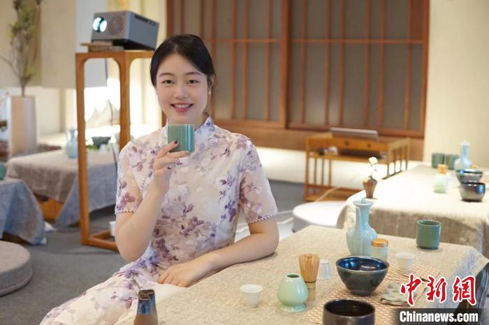 9月18日,臺灣青年闕郁璇體驗傳統(tǒng)茶道?!∈茉L者供圖