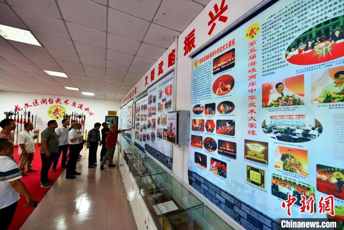 9月20日,福建省漳州市龍文區(qū)閩臺(tái)武術(shù)交流中心內(nèi)的圖文展示向參觀者展現(xiàn)了兩岸武術(shù)文化的一脈相承。 中新社記者 張斌 攝