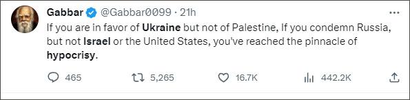 美國合眾國際社(UPI)報道注意到,有很多媒體專欄作者和社交媒體用戶都指出了西方在俄烏沖突等問題上的“虛偽行為”,佩特羅并不是唯一一位。例如一名認證為“作家”的社交媒體用戶寫道:“如果你支持烏克蘭而不支持巴勒斯坦,如果你譴責(zé)俄羅斯卻不譴責(zé)以色列或美國,那么你就已經(jīng)達到了虛偽的頂峰?!?/p>