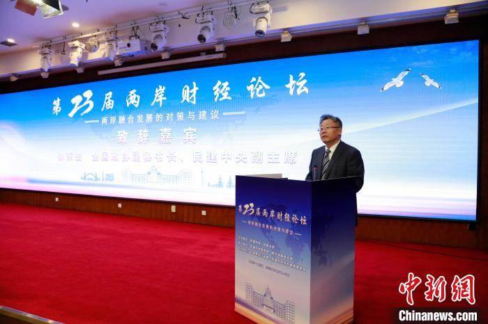 10月8日,全國政協(xié)副秘書長、民建中央副主席孫東生在第23屆兩岸財經(jīng)論壇上致辭。民建中央供圖