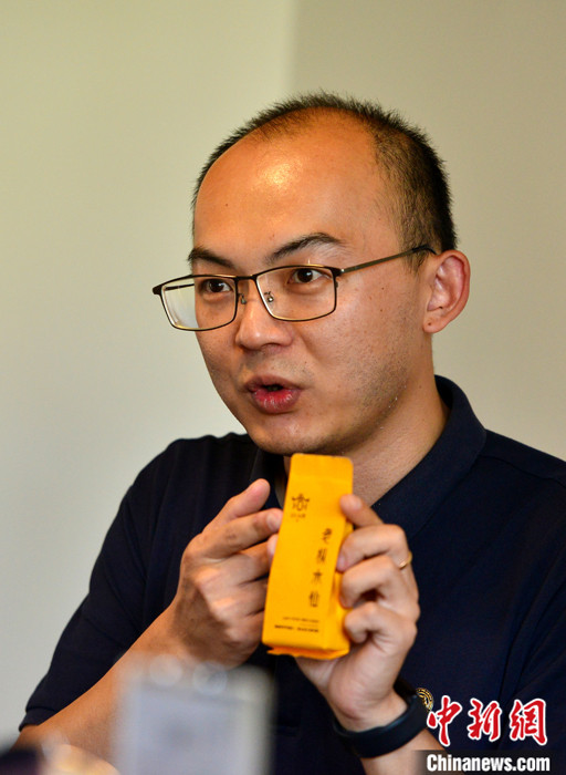 圖為9月19日,曾冠穎在“101公館”展示自己在漳州長泰茶山生產的臺灣茶。 中新社記者 張斌 攝