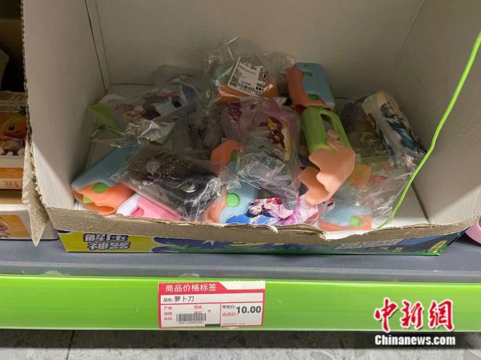 一些地區(qū)的市場監(jiān)管局也針對“三無”蘿卜刀開始采取行動。比如,重慶市璧山區(qū)市場監(jiān)管局對“蘿卜刀”等兒童用品開展專項整治行動。檢查發(fā)現(xiàn)有的1戶商家在宣傳“蘿卜刀”時使用“殺掉你”、“擦擦擦鯊掉”等誘導不當行為的文字,已現(xiàn)場責令商戶整改。