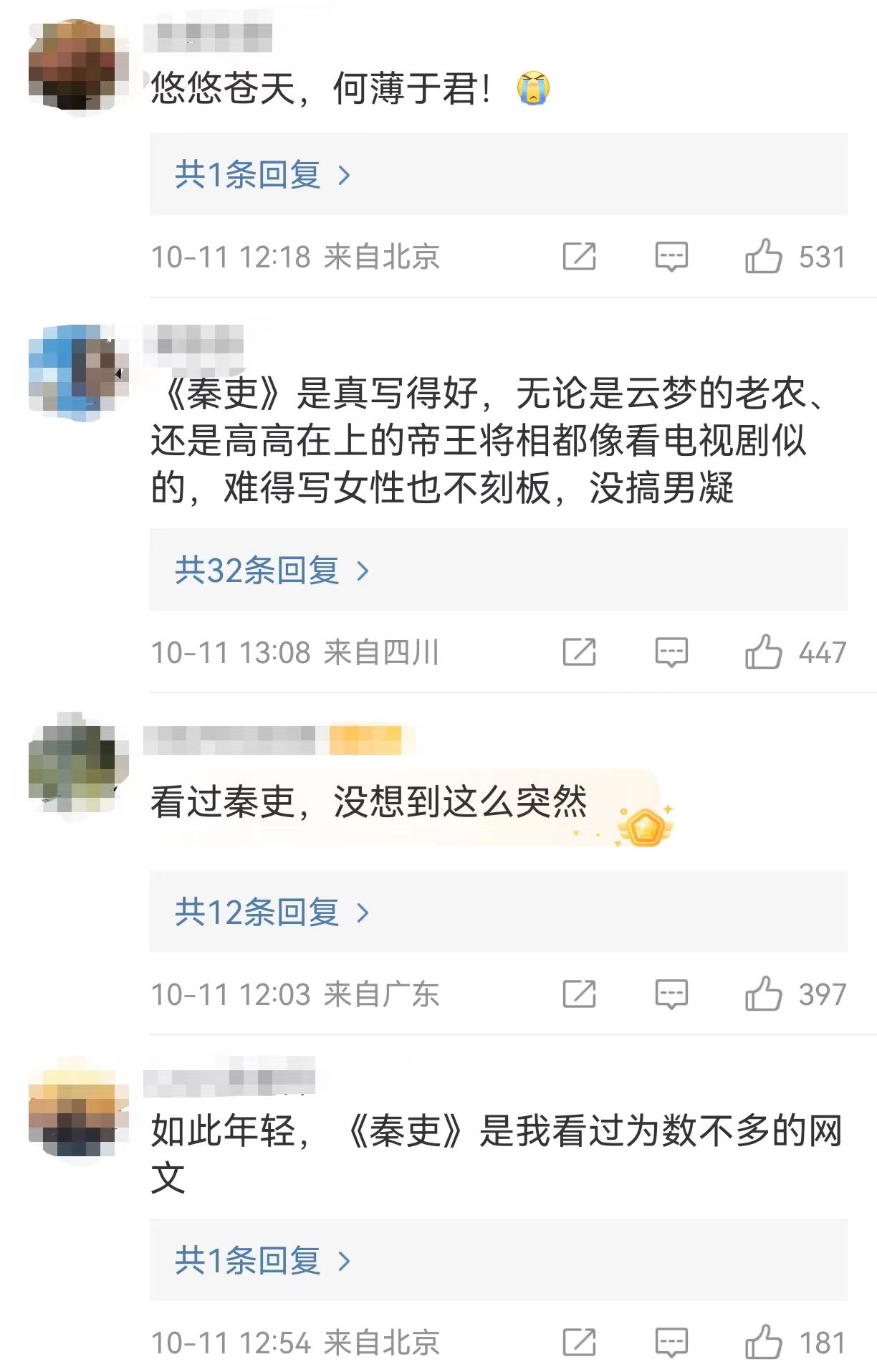 閱文集團發(fā)布的訃告里寫道:“七月新番一生赤誠,專注。他有志于循中國歷史脈絡(luò),由遠(yuǎn)及近,針對各個歷史時期完成相應(yīng)的故事創(chuàng)作。為此,他嚴(yán)謹(jǐn)推敲,細(xì)致考據(jù),從極少作家涉足的春秋戰(zhàn)國題材起筆,扎實書寫秦、漢故事。他所塑造的黑夫、任弘、第五倫等角色,燦爛鮮活,引讀者共鳴、共情,如今中斷于三國篇,我們深感悲痛、遺憾?!?/p>