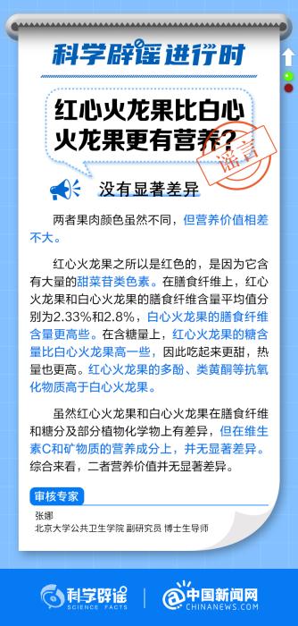 中新網(wǎng)10月16日電 在膳食纖維上,白心火龍果的膳食纖維含量更高些;在含糖量上,紅心火龍果的糖含量比白心火龍果高一些,熱量也更高;紅心火龍果的多酚、類黃酮等抗氧化物質(zhì)高于白心火龍果。二者在維生素C和礦物質(zhì)的營養(yǎng)成分上,并無顯著差異。綜合來看,二者營養(yǎng)價值相差不大。(來源:@科學辟謠 @中國新聞網(wǎng) )