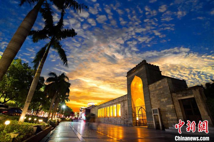 在古代海上絲綢之路的起點(diǎn)城市——福建泉州,當(dāng)落日余暉灑落于清凈寺前的廣場,披上霞裝的千年古寺散發(fā)出濃郁的異域風(fēng)情。