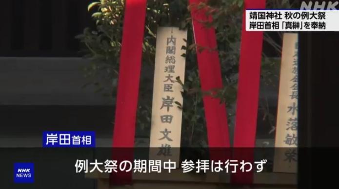 中新網(wǎng)10月17日電 據(jù)日本放送協(xié)會(NHK)報道,供奉有二戰(zhàn)甲級戰(zhàn)犯的靖國神社從10月17日開始進行所謂的“秋季大祭”,日本首相岸田文雄一早以首相名義,供奉了名為“真榊”的祭品。
