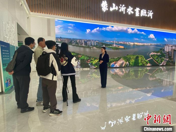 在臨沂市規(guī)劃展覽館,記者們了解了臨沂概況、發(fā)展成就和發(fā)展規(guī)劃藍圖。山東省委臺港澳辦供圖