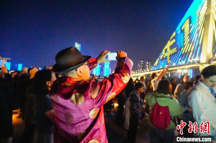 圖為10月17日晚,游客打卡武漢“知音號”游輪。吳淘淘 攝