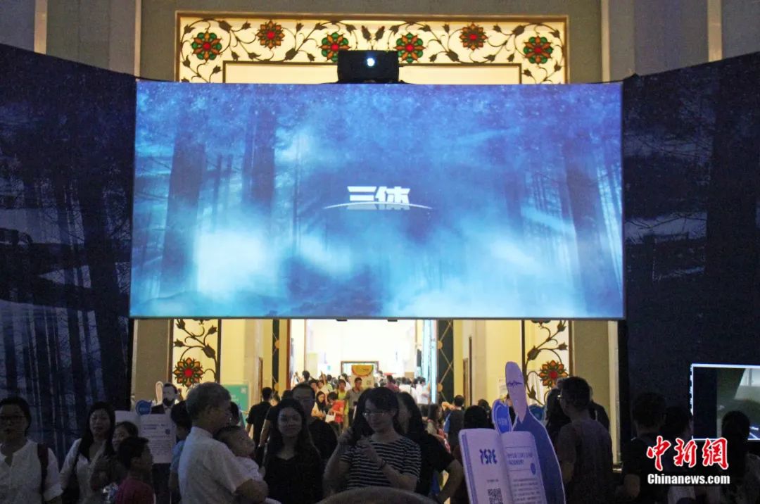 2016年9月17日,上海展覽中心的科普產(chǎn)品博覽會上,劉慈欣科幻小說《三體》的主題展館受到科幻迷關(guān)注。陳玉宇 攝