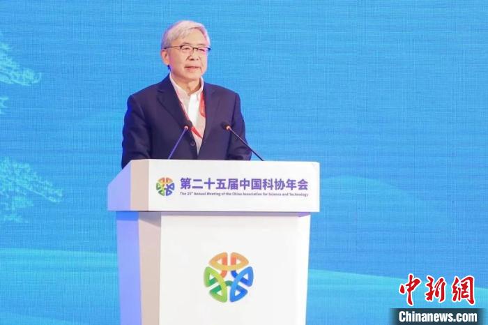 第二十五屆中國(guó)科協(xié)年會(huì)通用人工智能產(chǎn)業(yè)創(chuàng)新發(fā)展論壇上,中國(guó)工程院院士、中國(guó)自動(dòng)化學(xué)會(huì)理事長(zhǎng)、西安交通大學(xué)教授鄭南寧致辭。中國(guó)科協(xié) 供圖