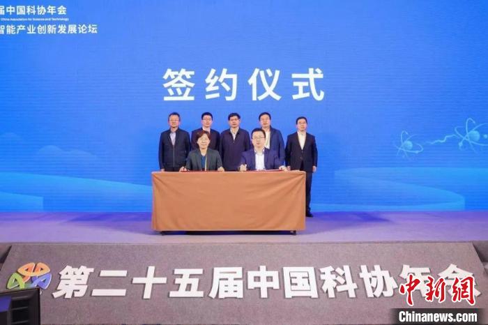 第二十五屆中國(guó)科協(xié)年會(huì)通用人工智能產(chǎn)業(yè)創(chuàng)新發(fā)展論壇上,中國(guó)自動(dòng)化學(xué)會(huì)與科大訊飛簽署戰(zhàn)略合作協(xié)議。中國(guó)科協(xié) 供圖