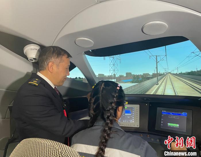 圖為泰國學(xué)員在全功能動車駕駛仿真器中體驗(yàn)駕駛高鐵?!”R琪 攝