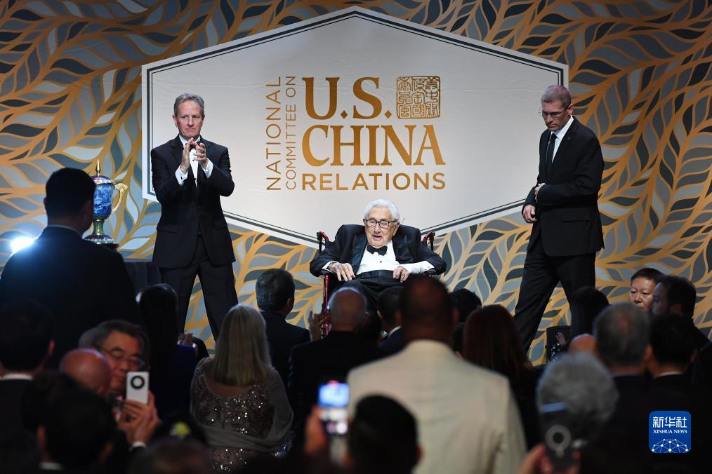 百歲高齡的基辛格在接受頒獎(jiǎng)時(shí),全場(chǎng)嘉賓報(bào)以持久熱烈掌聲。他在獲獎(jiǎng)致辭中說,“我一生中一半時(shí)間都在為美中關(guān)系工作”,美中之間的和平與合作至關(guān)重要,符合兩國和世界的利益。