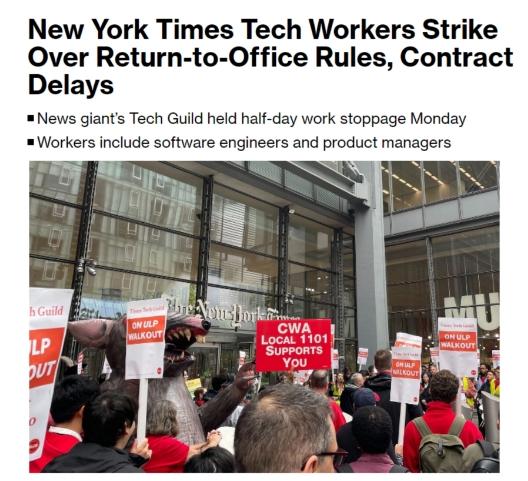 據了解,《紐約時報》的員工們與其管理層的合同談判已持續(xù)了15個月,他們指責管理層一直在拖延談判進程,并試圖限制他們在家辦公的能力。