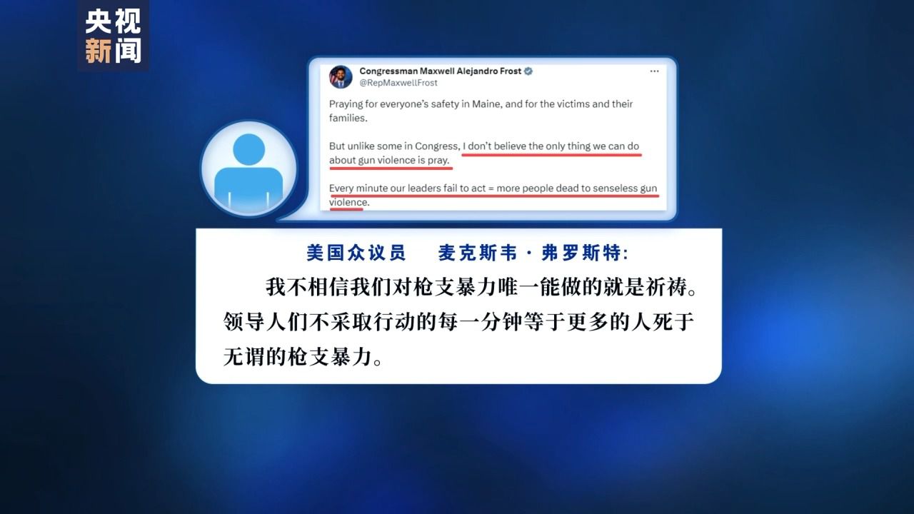 據(jù)美國“槍支暴力檔案”網(wǎng)站統(tǒng)計數(shù)據(jù),緬因州劉易斯頓當?shù)貢r間25日發(fā)生的大規(guī)模槍擊事件是美國今年以來死亡人數(shù)最多的一起惡性槍擊案,這折射了美國槍支暴力頻發(fā)的嚴峻現(xiàn)實。有分析指出,美國槍擊案件頻發(fā)是多重問題作用的結(jié)果,控槍方案遲遲無法有效推行和落實,槍支暴力治理恐難有實際突破。