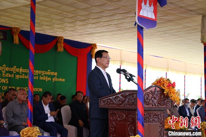 圖為中國駐柬埔寨大使王文天致辭。 中新社發(fā) 黎海月 攝
