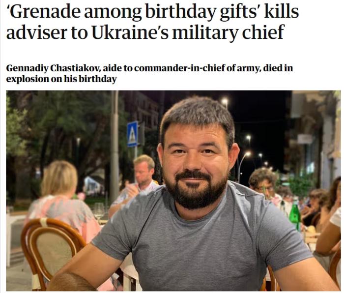 據(jù)報道,當天,烏克蘭武裝部隊總司令瓦列里·扎盧日內(nèi)在社交媒體Telegram上發(fā)文稱,“很不幸地,我的助手兼好友根納季·查斯季亞科夫少校(Gennadiy Chastyakov)今天在他的生日當天身亡。”