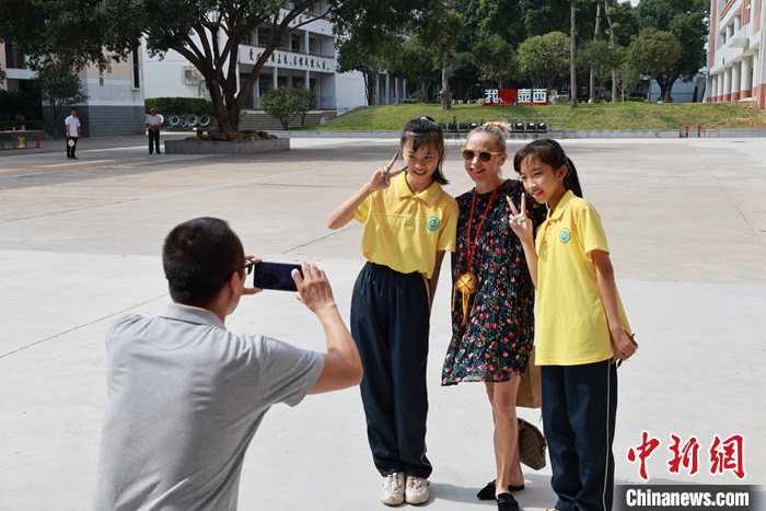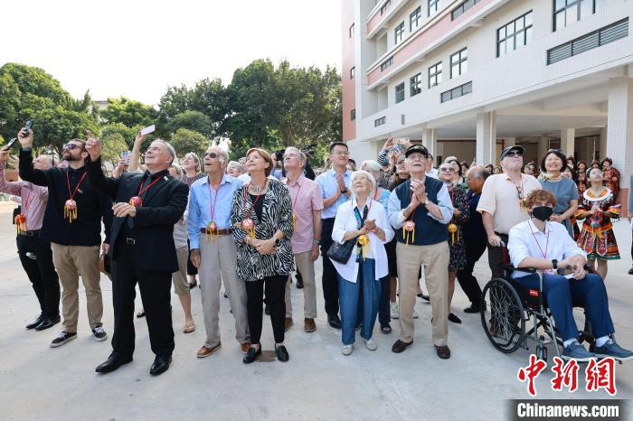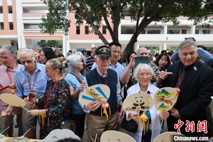 圖為飛虎隊(duì)后代與學(xué)生合影留念。 中新社記者 林馨 攝