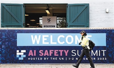 在英國(guó)布萊奇利園,警察在首屆人工智能安全峰會(huì)上執(zhí)勤。