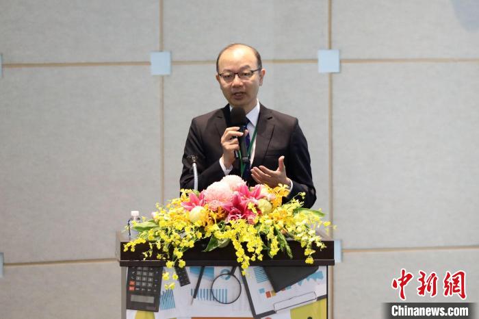 臺(tái)灣經(jīng)濟(jì)研究院8日在臺(tái)北舉辦2024年景氣展望與產(chǎn)業(yè)趨勢(shì)研討會(huì),臺(tái)經(jīng)院景氣預(yù)測(cè)中心主任孫明德發(fā)言?!≈行律缬浾? 陳小愿 攝
