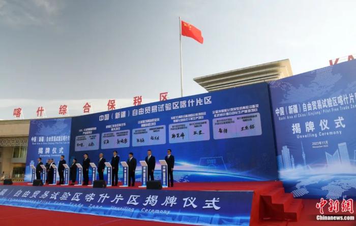 2023年11月11日,中國(新疆)自由貿(mào)易試驗(yàn)區(qū)喀什片區(qū)揭牌。孫亭文 攝