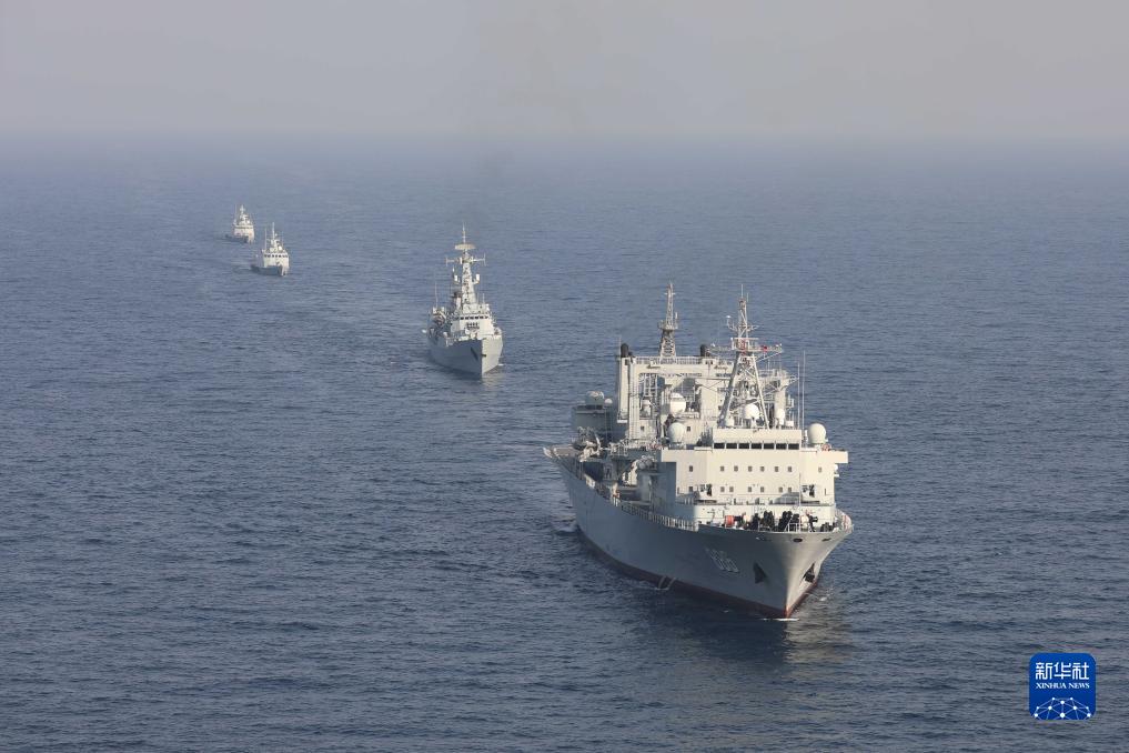 中巴“海洋衛(wèi)士-3”海上聯(lián)合演習在阿拉伯海北部海空域舉行,雙方艦艇組織編隊運動(11月14日攝)。新華社發(fā)(姜霞攝)