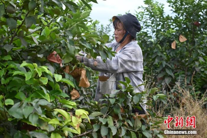 圖片圖為果農(nóng)正在給檸檬套袋。張旭 攝