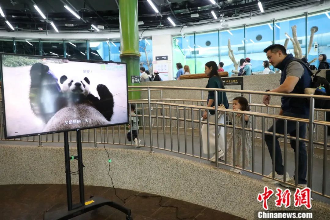 11月19日,民眾來(lái)到臺(tái)北動(dòng)物園緬懷“團(tuán)團(tuán)”。圖為現(xiàn)場(chǎng)播放“團(tuán)團(tuán)”一家回顧影片。中新社記者 陳小愿 攝