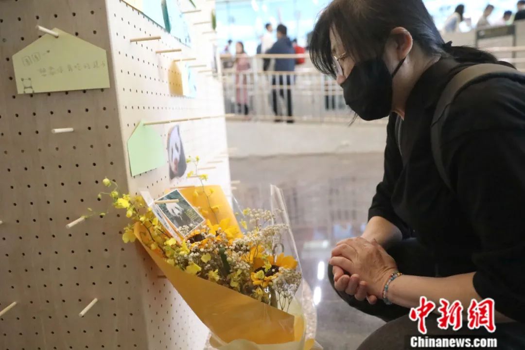 不少家長(zhǎng)帶著小朋友來(lái)到現(xiàn)場(chǎng)參加活動(dòng),小朋友在卡片上慢慢畫(huà)出心中熊貓的模樣,并寫(xiě)下想對(duì)“團(tuán)團(tuán)”說(shuō)的話。有的民眾還送來(lái)鮮花,表達(dá)對(duì)“團(tuán)團(tuán)”的喜愛(ài)和懷念之情。
