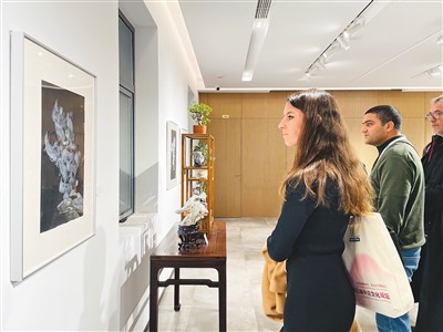 與會法方嘉賓在欣賞中國畫家的畫作。