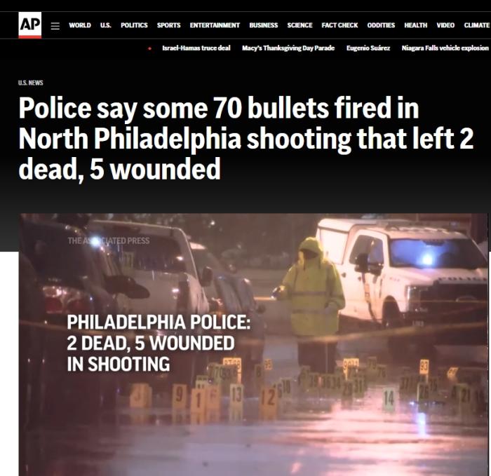 美國費(fèi)城槍擊事件致2死5傷,槍手發(fā)射70發(fā)子彈仍未被捕