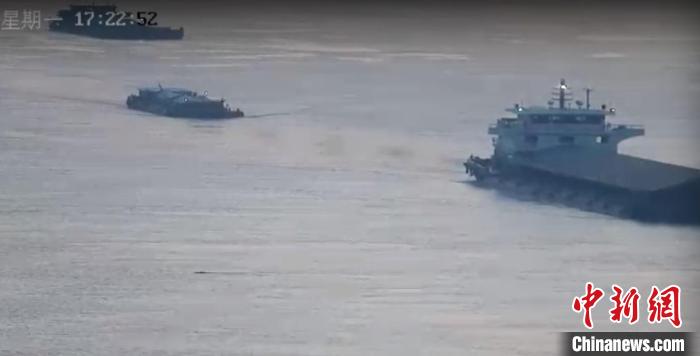 27日傍晚,南京海事局交管中心值班人員在通過(guò)長(zhǎng)江三橋上的攝像頭例行巡查時(shí),意外地發(fā)現(xiàn)江面上有一頭野豬在游泳。江蘇海事局 供圖