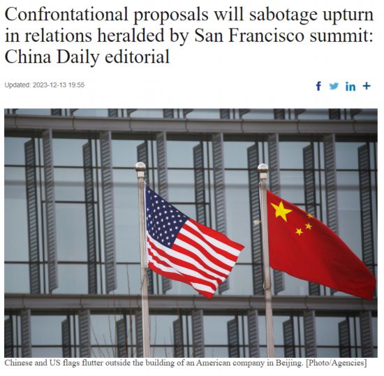 11月,舊金山會晤達(dá)成共識,中美雙方應(yīng)加強(qiáng)溝通,妥善管控分歧,推進(jìn)對話合作。然而,委員會的提議卻與舊金山會晤共識背道而馳,充滿對抗性。提議或?qū)?dǎo)致美國國會于明年出現(xiàn)更多反華立法,這無疑將給雙方關(guān)系的改善蒙上陰影。