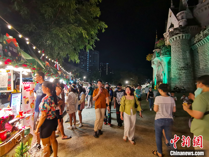 1月1日晚,位于泰國(guó)曼谷的網(wǎng)紅打卡點(diǎn)喬德夜市游人如織。 中新社記者 李映民 攝