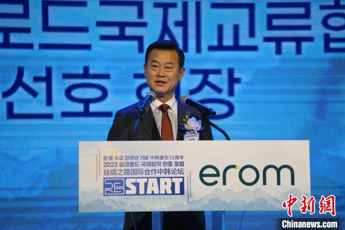 圖為韓中絲綢之路國際交流協(xié)會(huì)會(huì)長李先虎致辭。中新社記者 劉旭 攝
