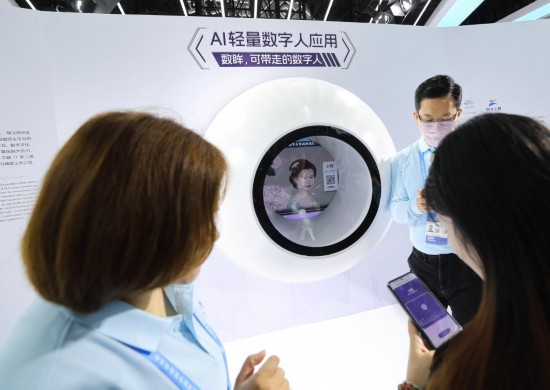 2023年11月23日,參觀(guān)者在第二屆全球數(shù)字貿(mào)易博覽會(huì)上體驗(yàn)數(shù)字人應(yīng)用。新華社記者徐昱攝